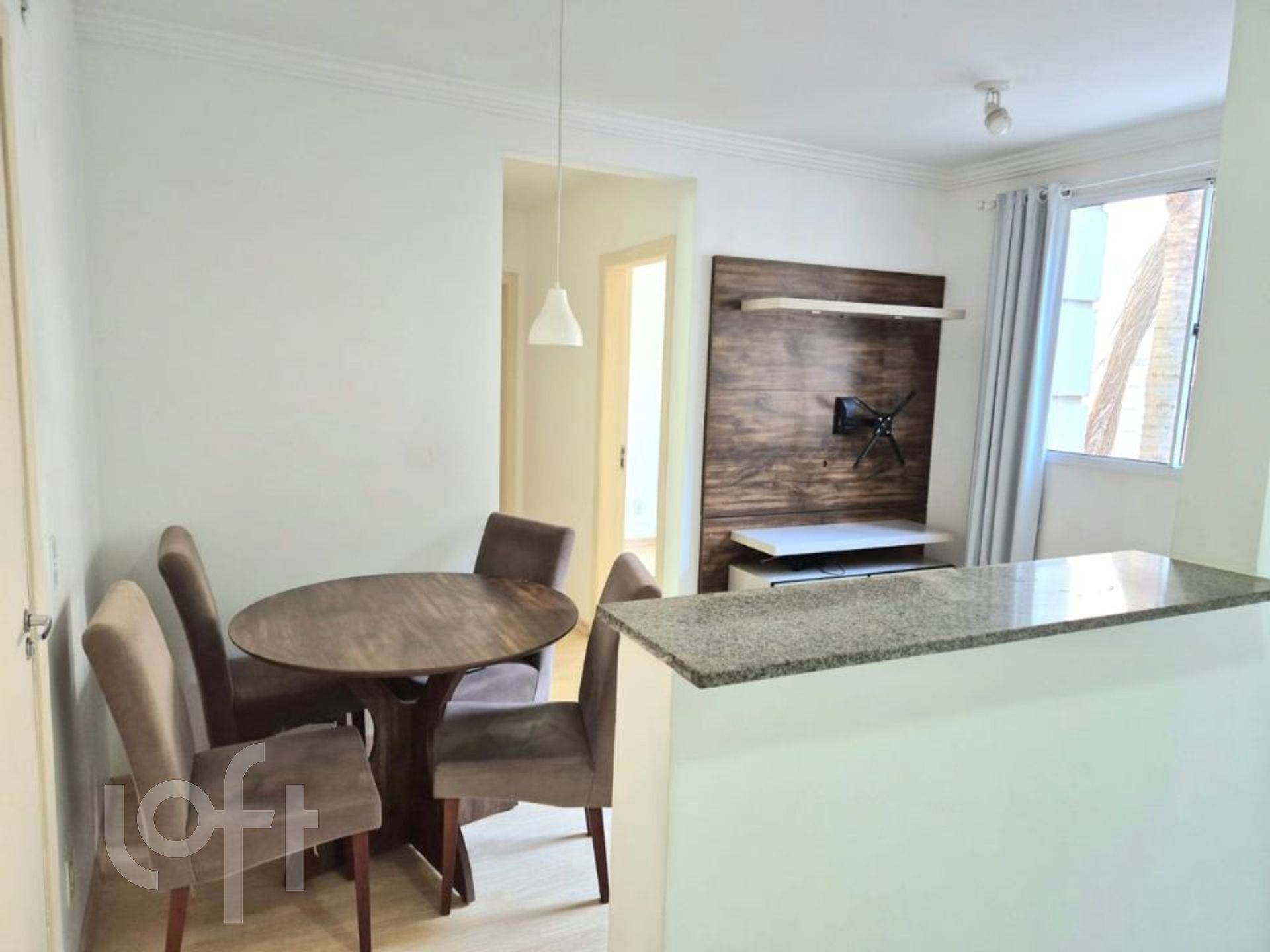 Apartamento de 2 dormitórios com suíte, móveis planejados no quarto e ar condicionado de 12 mil Btus.Sala com painel para TV, banheiro social, cozinha com pia e armários, área de serviço com tanque e armário.Possui espera para colocação aquecedor a gás, proporcionando assim água quente na cozinha e nos banheiros.Apenas 1 lance de escadas em condomínio bem localizado, com salão de festas totalmente equipado e com mesa de sinuca, portaria 24hs, piscina adulto e infantil, playground e espaço para passear com os Pets.Apartamento Quitado, aceita financiamento e FGTS. Agende sua visita!