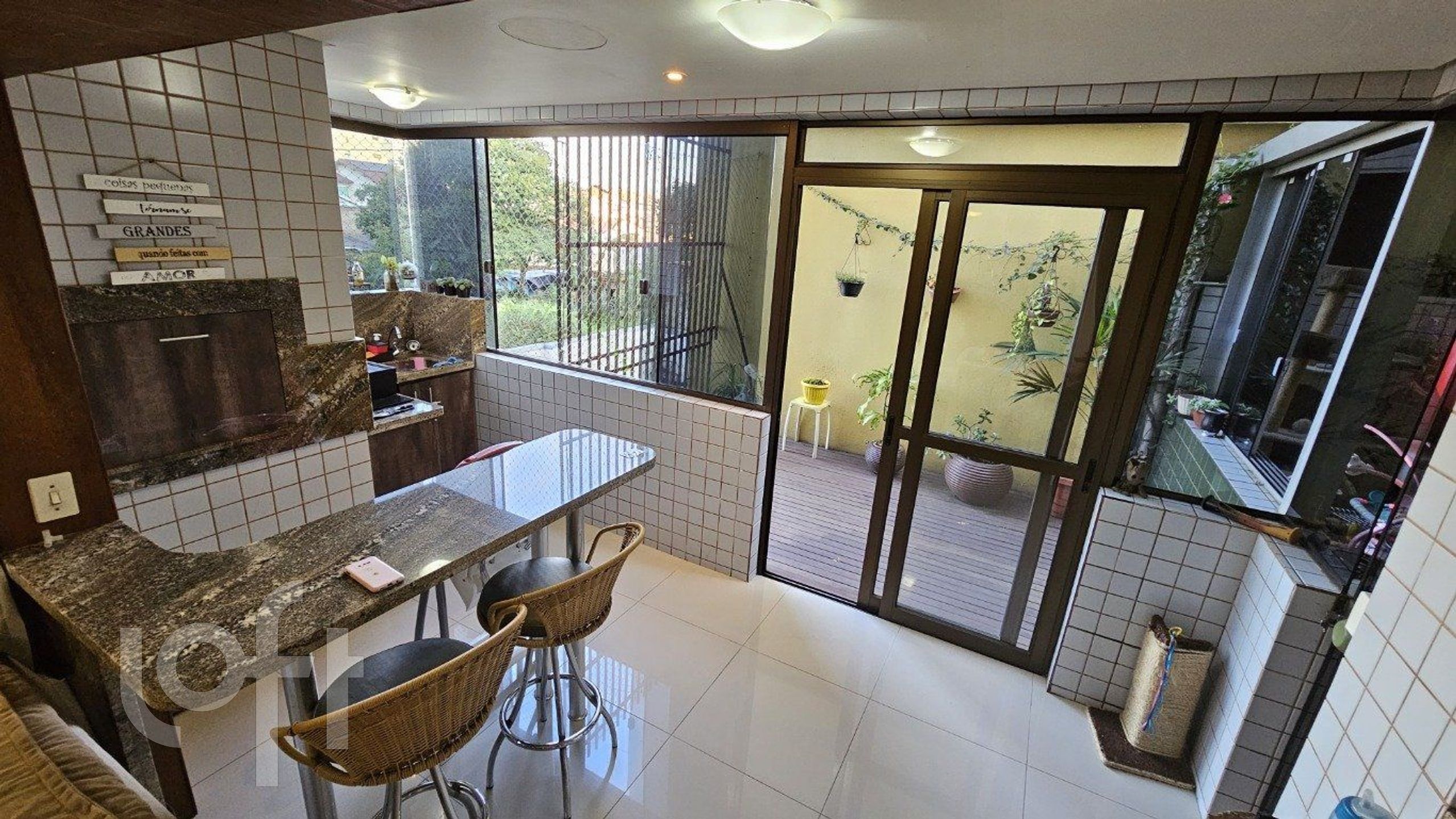 Apartamento espaçoso, localizado a apenas 50 metros da avenida principal, no coração da cidade. Dispõe de dois banheiros, incluindo uma suíte. Possui lavandaria e cozinha separadas. A sala de estar integra uma churrasqueira e dá acesso a um agradável deck exterior. Conta ainda com um espaço adicional coberto por vidro, ideal para ser utilizado como segunda sala ou zona de lazer.