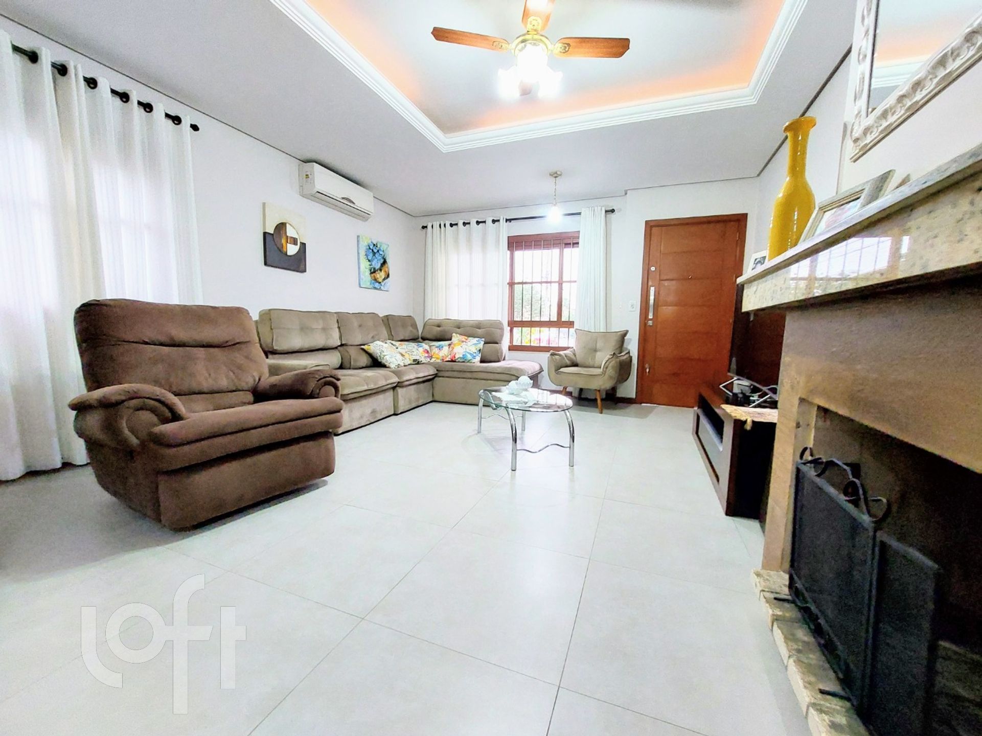 A casa de esquina que você procurava! E muito bem distribuída com peças amplas, contempla três dormitórios, sendo um suíte no andar térreo da casa com toda acessibilidade possível. Sala ampla com lareira e ao lado lavabo, sala de jantar e cozinha com móveis planejados. todas ambientes com ar-condicionado. Área de serviço, com acesso ao pátio e a garagem para 3 carros, sendo duas cobertas com os carros lado a lado, onde fica a churrasqueira com banheiro completo. A garagem tem dois portões, ambos eletrônicos. Toda casa com aberturas em madeira nobre e telas em todas janelas. Na sala cortinas sob medida. No segundo andar dois quartos, banheiro, sacada com pergolado e bela vista para o residencial. Há um depósito no segundo andar com 60m2, onde pode ser ampliada a casa. Imóvel tem estrutura para mais um andar pois tem laje nos dois andares. O condomínio conta com quadra poliesportiva, cancha de bocha, campo de futebol, playground, duas quadras de areia, espaço fitness ao livre e sistema de segurança com monitoramento para entrada e saída de veículos. Está localizado na zona sul próximo a Av. Juca Batista e Zaffari Hípica. Confira oportunidade!