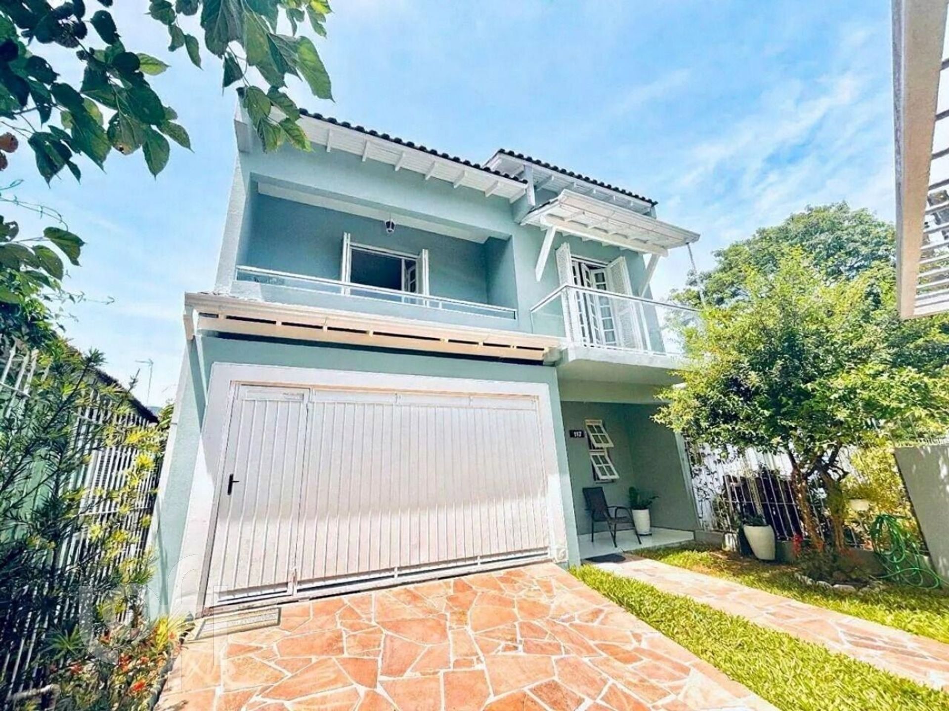 Sobrado com dois dormitórios, suíte, banheiro social no andar de cima, banheiro social no andar de baixo. Sala com lareira, sala de visita, sala de jantar, cozinha, churrasqueira e garagem para dois carros.